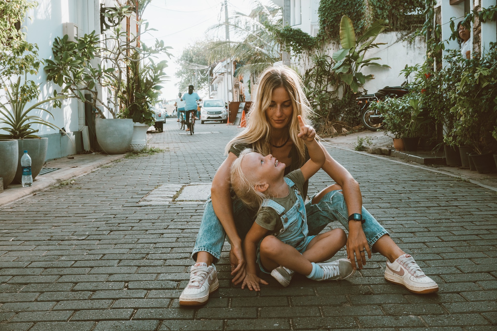 何してるのかわからないけど、道行く人を眺めてる。